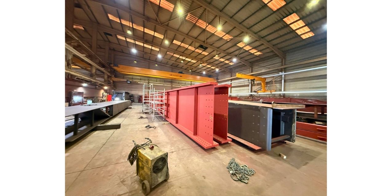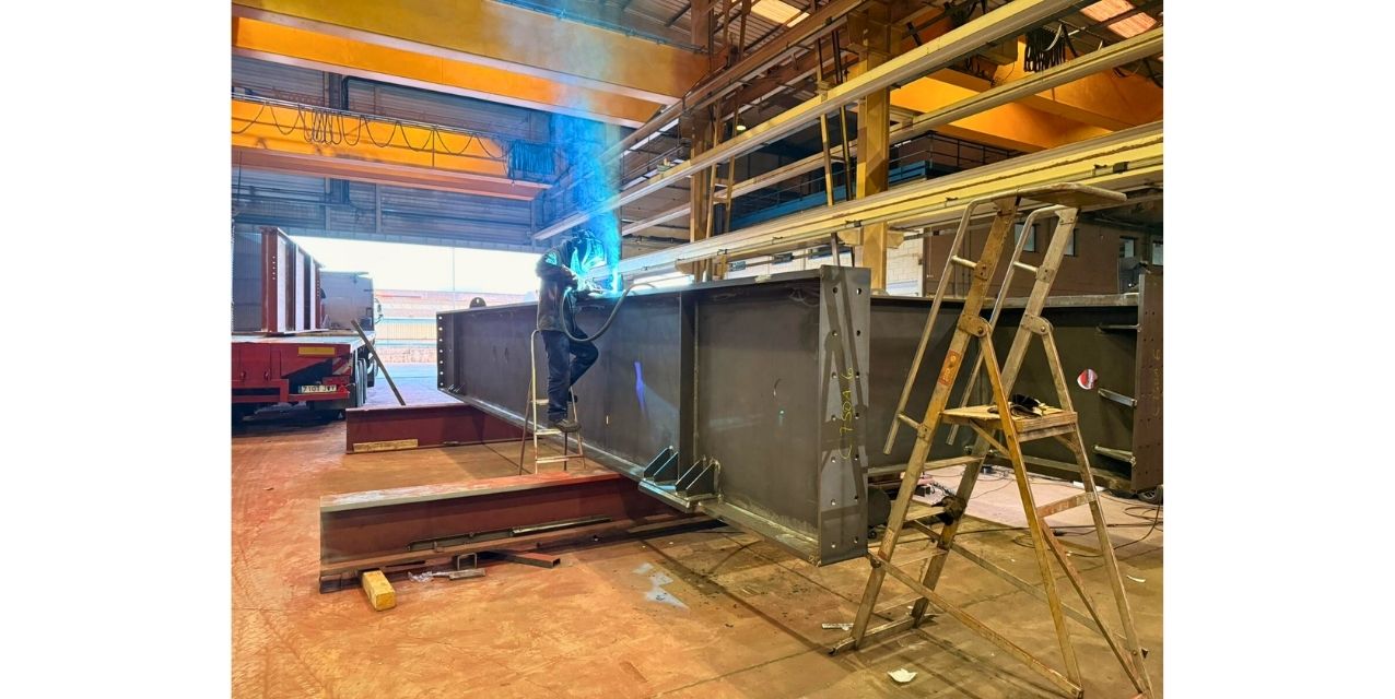 Maniobra crítica: El montaje de la estructura metálica requirió el izado de vigas principales de 30 metros de longitud.